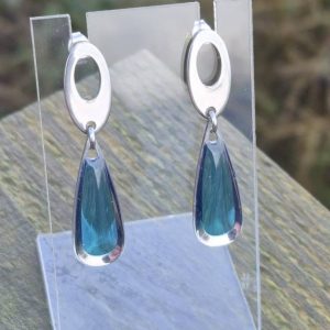 Silver and teal water drop earrings