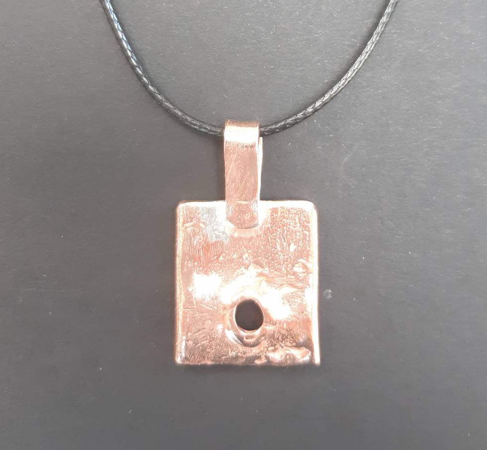 This pendant had a story before it ever became a pendant! The copper used to make it came from the original fireplace in my house - the house is over 80 years old - so it could tell a story or two too! It is 3.5cm in length, including the bale and comes with a waxed cord. It is quite a weighty piece but smooth to the touch.