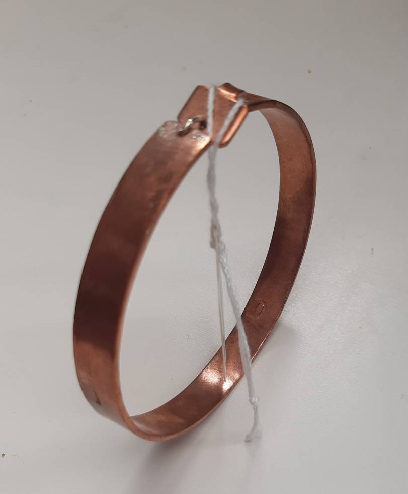 A copper bangle with an opening, using sterling silver jump ring.