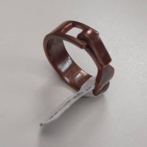 The Lady bangle is a variation of the Lady bracelet (more anon). The bangle is 7.5cm in diameter and 1cm wide. I treat a long 'busbar'of copper to torch heat, shape it, then attach a separate piece to allow an opening, using a sterling silver jump ring.