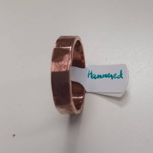 The ring itself is made from a straight piece of copper initially, then piercing away at the sides so that one end slots into the other to give the base for the silver flower (sterling silver jump rings soldered in place). This particular ring is a size U, with a .5cm band and the top is .8cm in width.