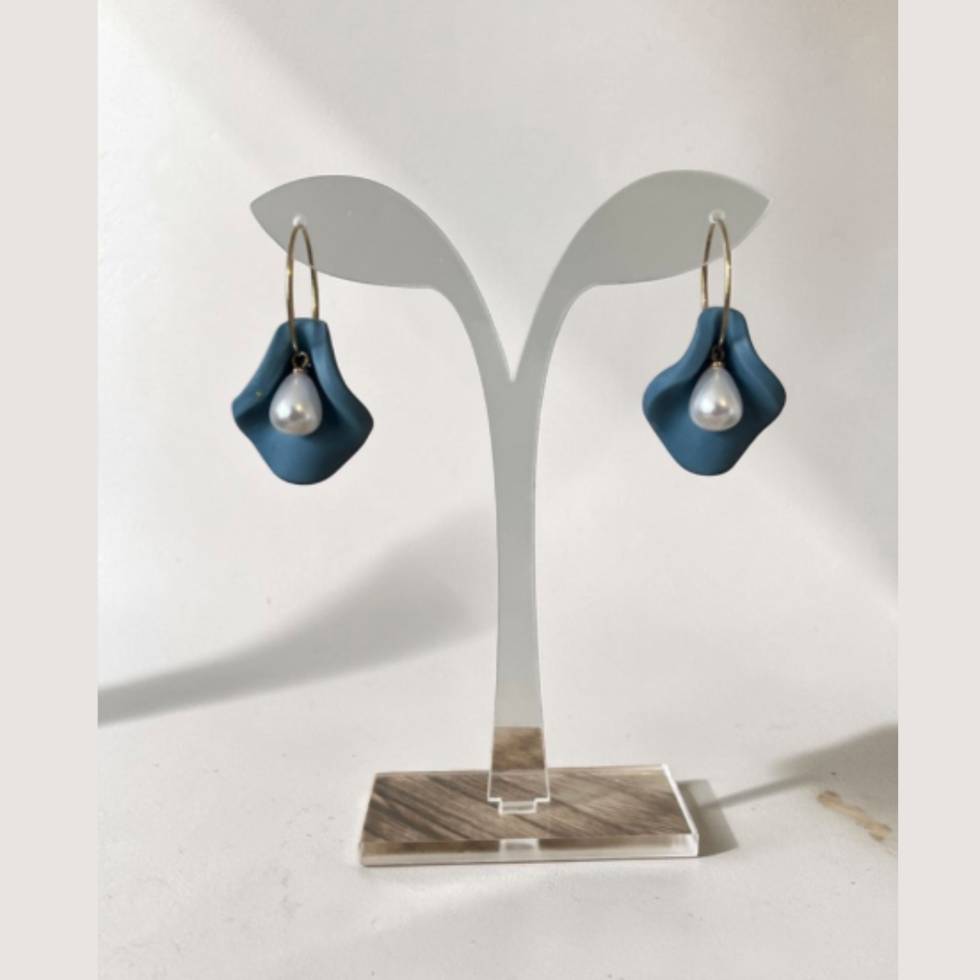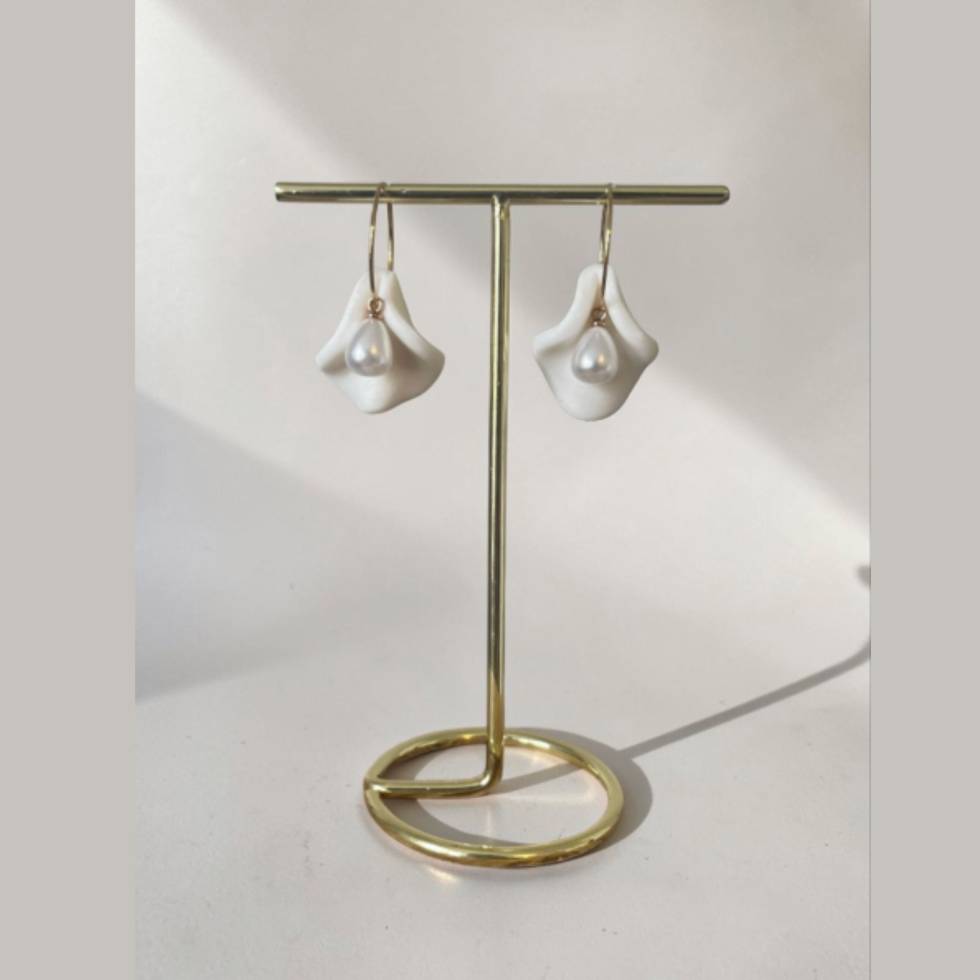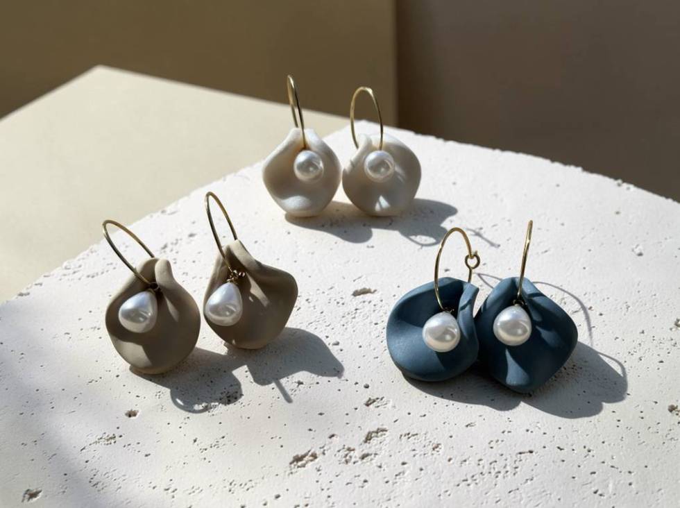 Hand-sculpted botanical elegance in three stunning shades: Pearlescent White, Cream, and Ocean Blue. These lightweight (2.5g) clay petal earrings feature lustrous pearl drops and hypoallergenic gold-plated hoops. The perfect artisanal touch for brides, bridesmaids, or your “Something Blue” tradition. 100% handmade in Ireland 🇮🇪.