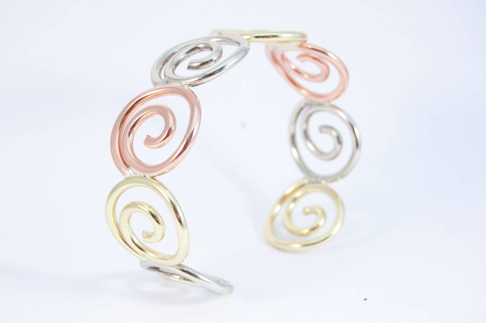 Summer sun bracelet handcrafted in brass copper and alpaca silver , polished and lacquered to prevent tarnishing
