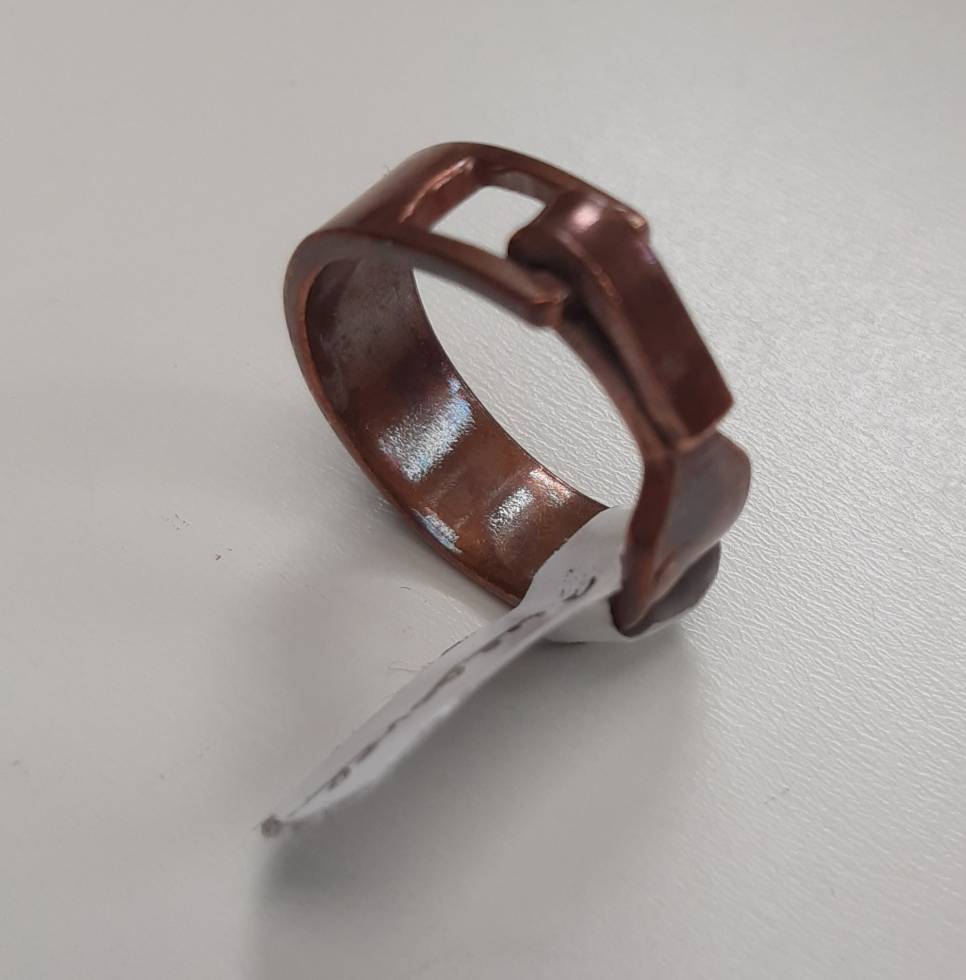 No solder was used in the making of this ring - I cut it to fit into the other end and turn it back on itself. It works so I like to say it is a turnover - turn over a new leaf, turn over a new page or turn over in the bed!